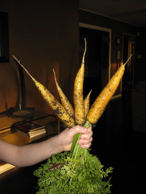 First thing I did was water the winter vegetable garden and trees in the backyard. Here’s a few pictures of my veggies, including some carrots that I put in the potato soup for Friday night’s dinner.