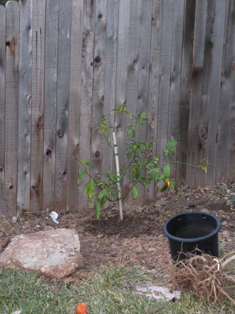 I also decided to plant the kumquat tree in the ground. The ground was not exactly soft, and the soil, well calling it soil would be quite a stretch. Anyway, I got out a shovel and pitchfork and went to work. Not only did I have to fight the thick clay, but I found a huge chunk of concrete in the ground as well from who knows when. I mixed the dirt with compost, a 50/50 mix. Then I put in some root booster and planted the tree. I am hoping it will like it’s new home better than the small pot it was in before.