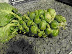 This week has been a great garden week. Tonight we finally picked our one and only brussel sprout plant. It took me about 5 minutes to get the root out of the ground. I now know why they are in the store/farmer’s market w/ all of their stems missing … they all rip off when you are trying to uproot the plant 🙂 I cooked the brussel sprouts with some bacon, onion, butter, and lemon. mmmm!
