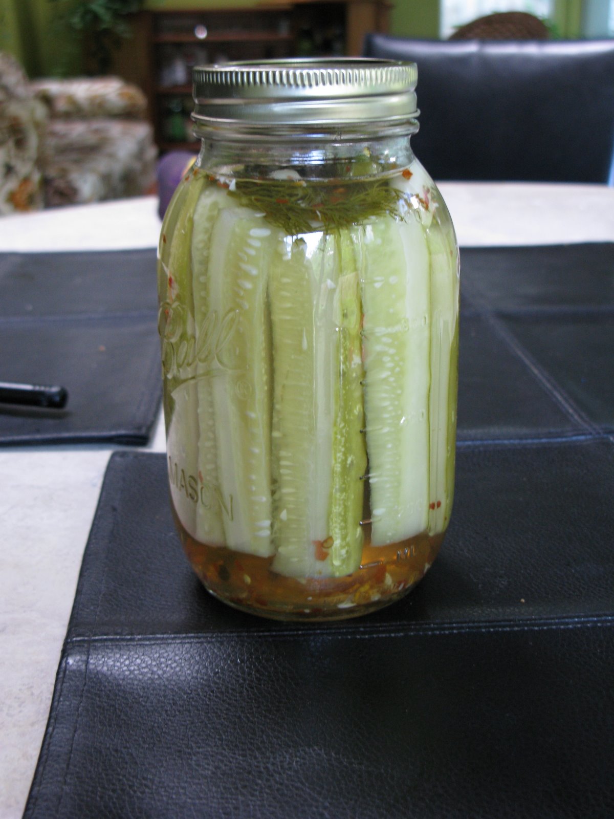 Finally, last night after two weeks of waiting we tried the third batch. Winner! This one was the perfect mix of salt, vinegar and very crisp. It seems the trick is learning what ratios you like. We decided that we like a 3:1 water to vinegar.