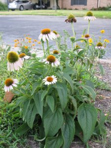 >Oh, dear! I could post similar photos of coneflowers, Molly Ivins salvia (poor, poor Molly), yellow columbine and passion vine. Hang in there – the weathermen say El Nino will save us this fall!