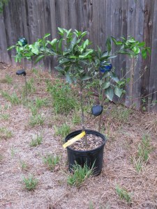 I mentioned as one of my spring goals that I wanted to find a limequat tree. I didn’t have much luck and just crossed it off the list. Last week at The Natural Gardener I didn’t find a limequat tree, but I did find a lemonquat. I think that’s close enough. Turns out they were having a 40% off sale on all trees, so I picked up three citrus trees. All are Texas hardy, so I can plant them right in the ground. This is a requirement, since I already have the fun of moving my Meyer Lemon and Mexican Lime in and out.