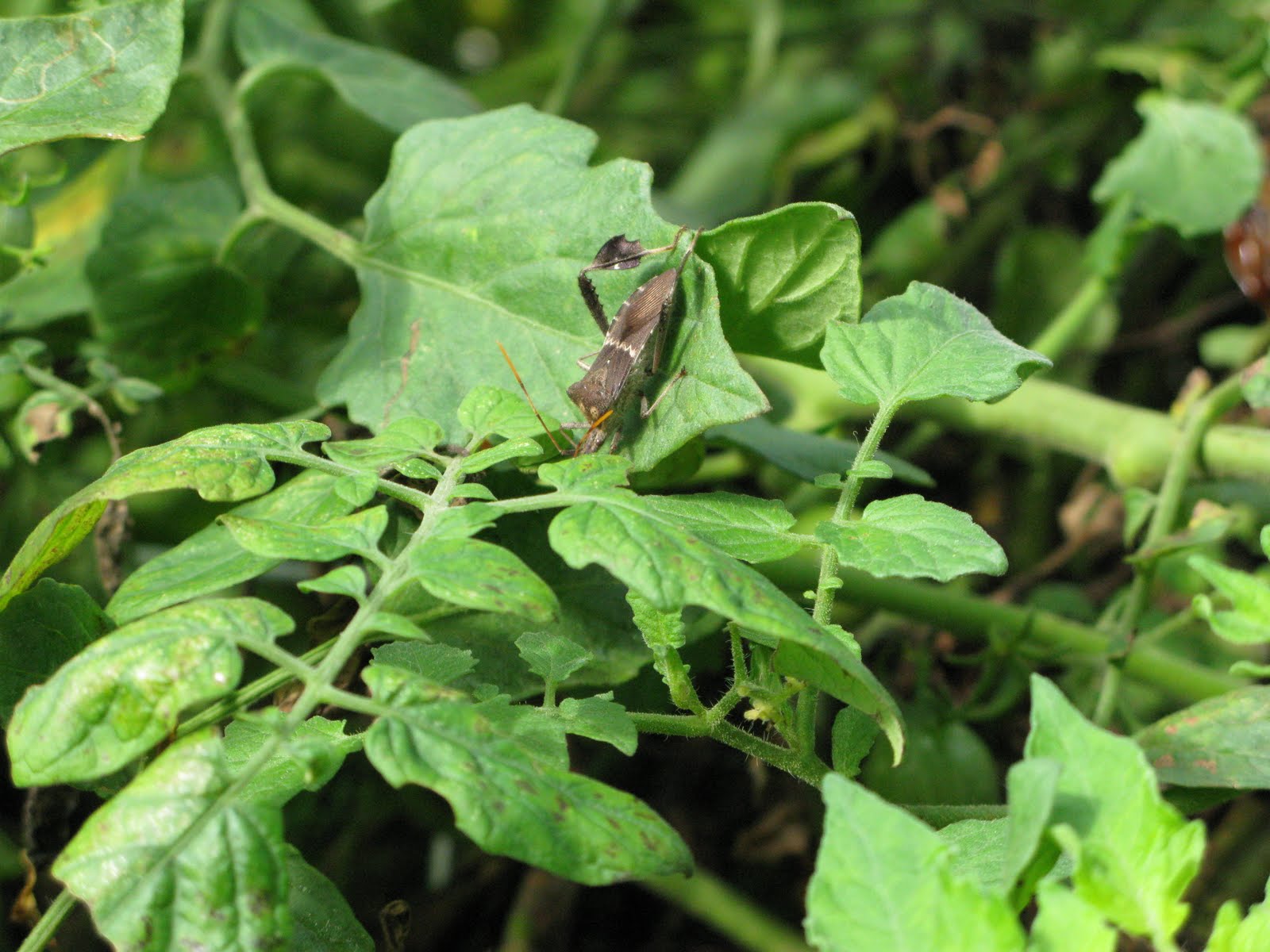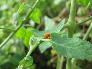 I’ve been so busy with my new veggies and flowers that I’ve been neglecting the tomatoes. This weekend I gave them a little attention and found that both leaf-footed bugs and tomato horn worms. Argh!
