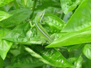 I did find a few friends in the garden today, which was nice after fighting off the others all morning. Here is an Anole I found in the Basil. I didn’t get a picture, but I did find some Soldier Bugs too.