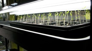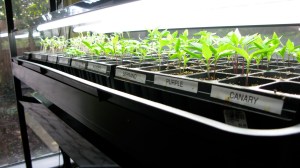 I just moved these to the grow light shelf yesterday, so they still look as little sad. The true leaves haven’t shown up yet, but should within the next few days.