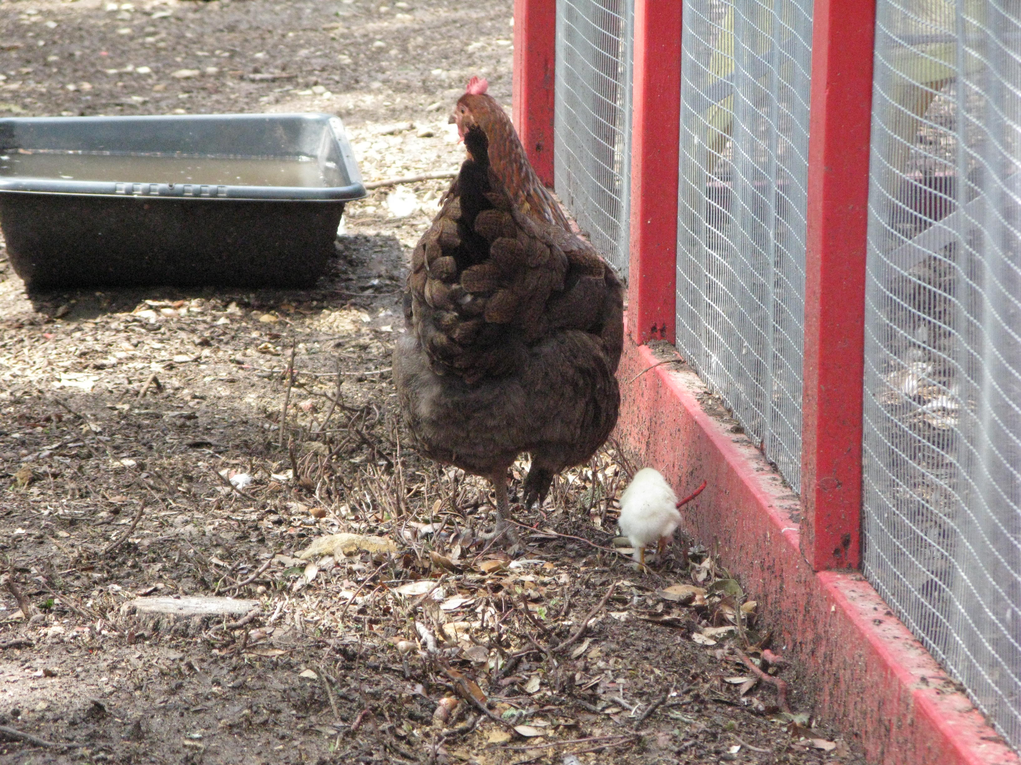 Originally Fancy had 3 chicks and Priscilla had 2, but maybe Fancy realized that 3 were just too many to handle. She gave one of the chicks to Priscilla. The chick she gave away also looked very similar to Priscilla’s chick, so maybe it was easier than trying to figure out whose was whose.