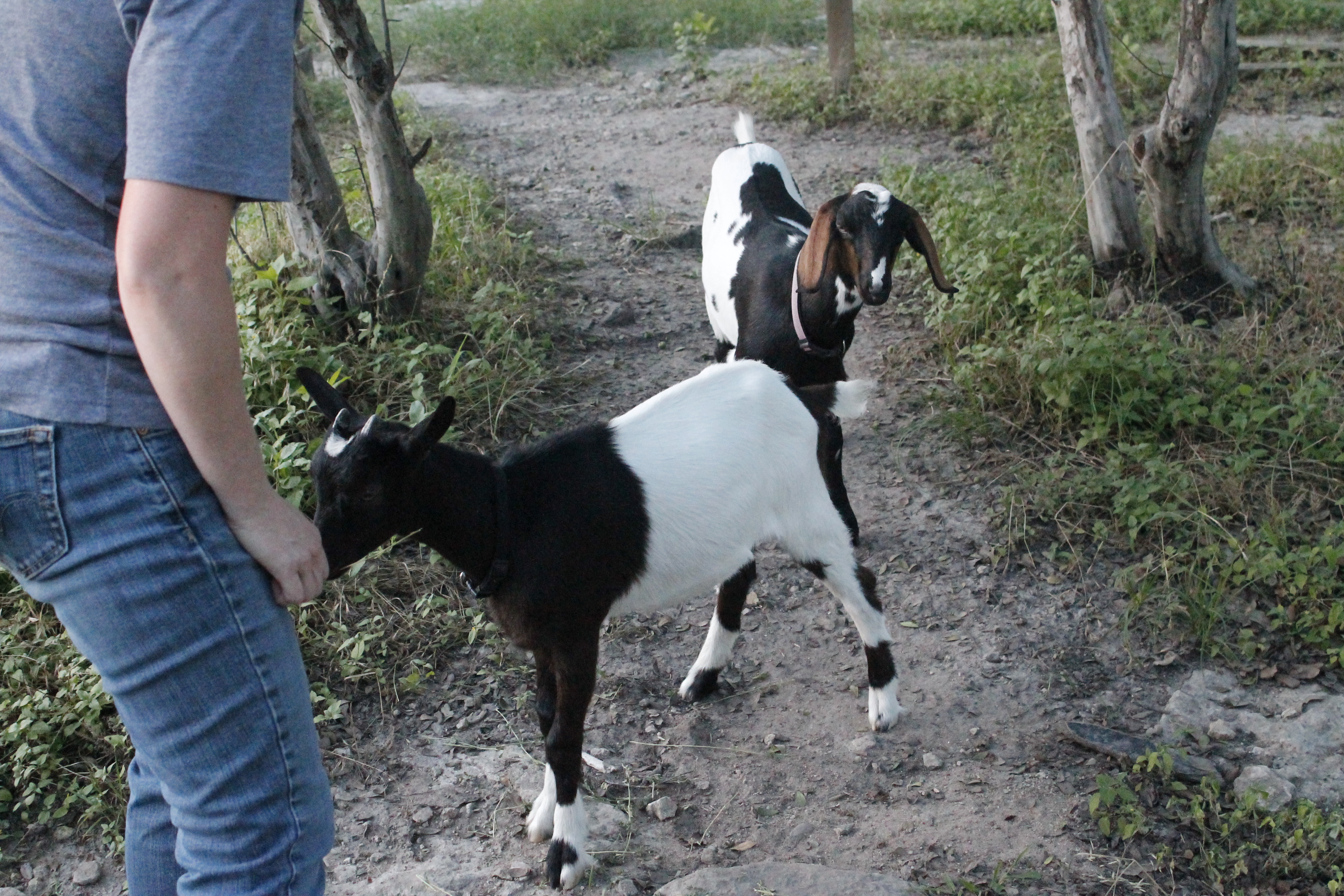 Hank is a mini Alpine and Larry is a mini Nubian. These two are permanent additions to help keep the weeds in check.