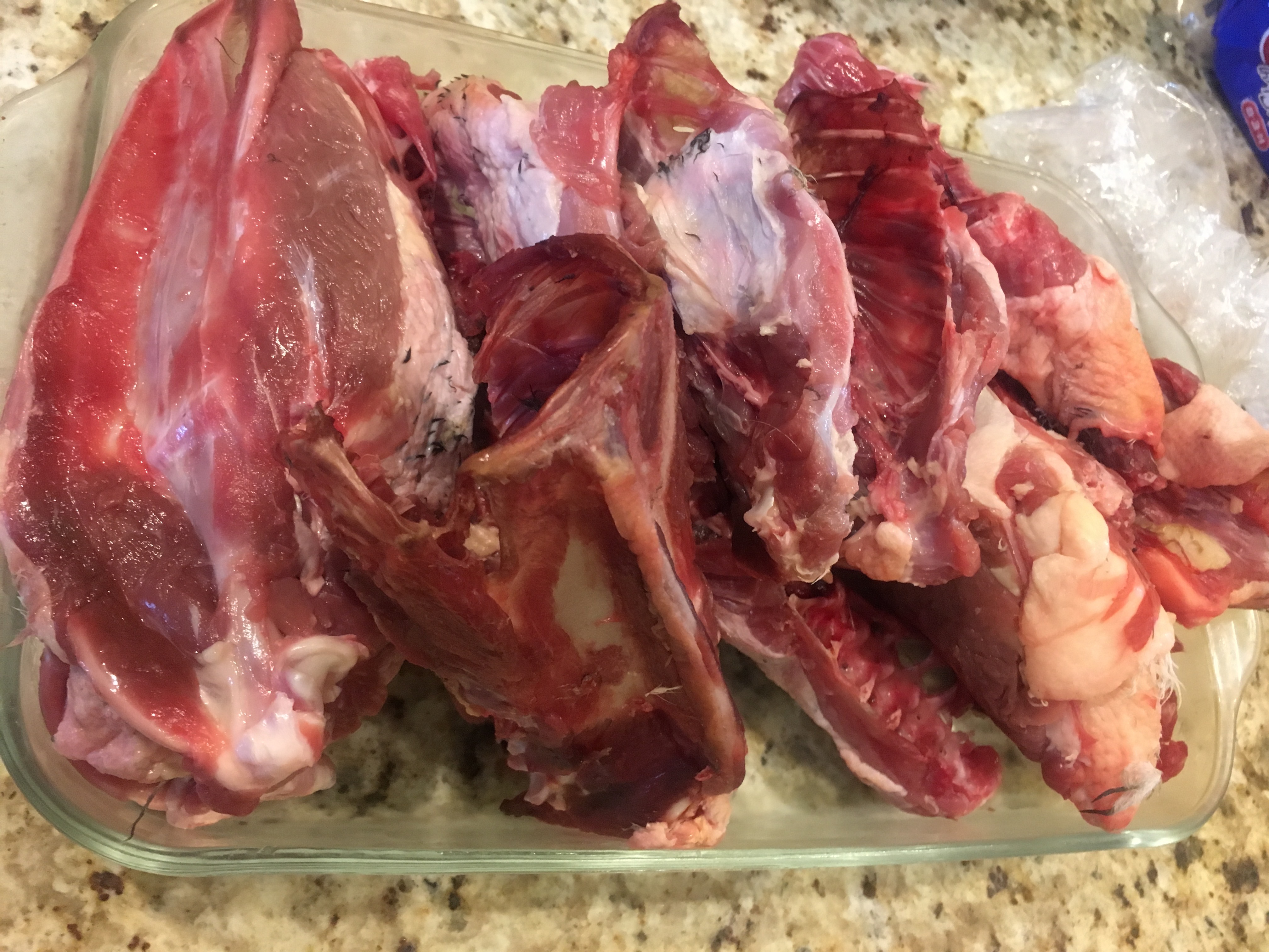 When we processed our last round of ducks we decided to piece them out (breasts, legs, wings) and save the carcasses for stock. Today was the Detroit Lions bye week, so I took the opportunity to make duck stock.