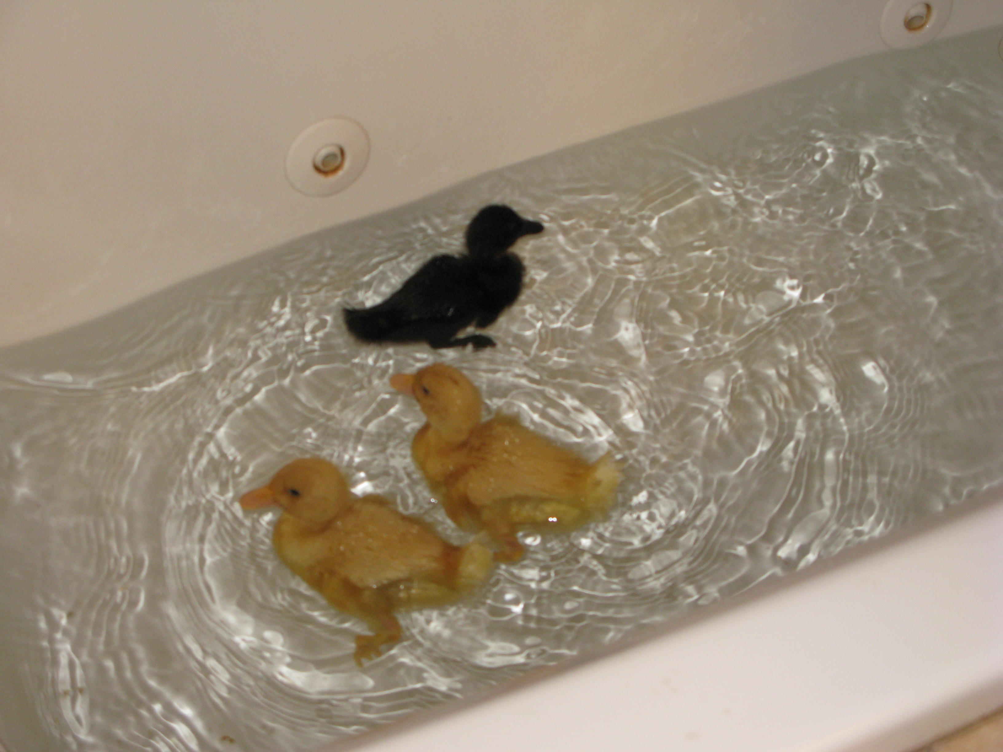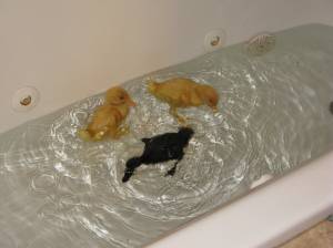 These two cuties are the newest addition to the flock. The chick was born yesterday, and the duckling today. These two ducks are sitting on another few dozen eggs, so we are hoping for several more in the next few days.
