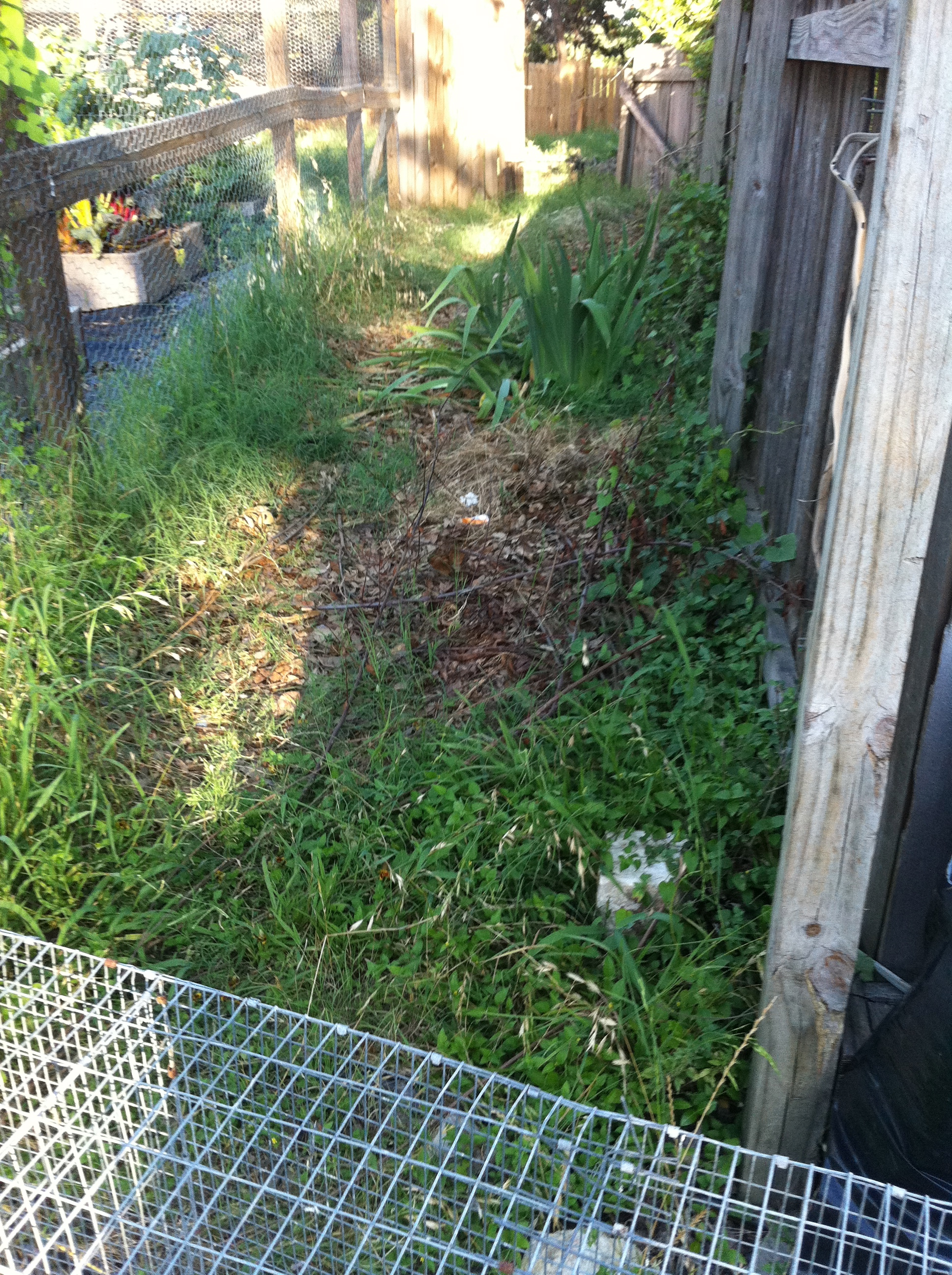 I set traps in the vegetable garden as well as in the chicken yard. Since we don’t want to accidentally catch a chicken, we have used one of our extra coops (the mom and baby coop which is currently empty). Each night I sprinkle a little food in there and set a few traps. If you care to look closely you can see where we caught 2 rats last night.