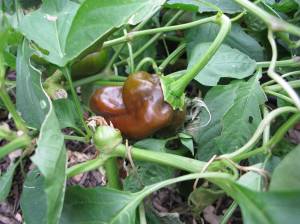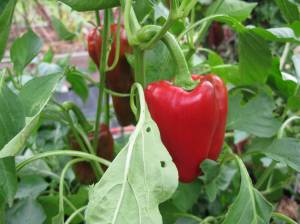 Although peppers love the heat, they don’t love the Texas sun. Last year most of me bell peppers got sun scorched before they full ripened. This year I put up shade cloth on the west side. I have been very successful with the bells and have only lost a few high hanging ones. The emerald giant and ozark giant are huge, great for stuffing.